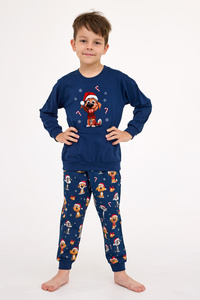 593/173 966/173 Dog Піжама для хлопчика Cornette, - темно-синій, бавовна, новорічна тематика, песики