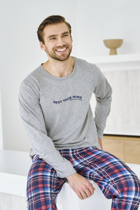 Жіноча піжама Taro 3441 Astrid, темно-синій – бавовняна кофтинка з принтом, фланелеві штани в клітинку