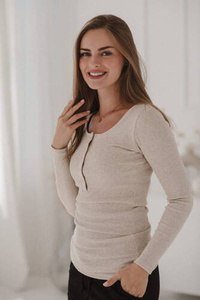 Бамбукова піжамна кофта для вагітних і годуючих жінок/ короткий рукав Moon Milk&Love, - світло-бежевий