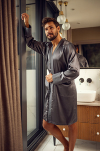 Жіночий сатиновий халат Świadkowa ByShelly - рожевий/срібло