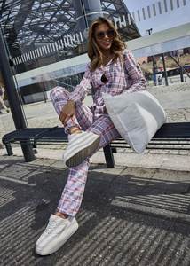 Жіноча піжама Rozana Italian Fashion – 100% бавовна, довгий рукав, довгі штани, клітинка