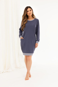 Бавовняна нічна сорочка 159 Regina, темно-синій - бавовна, довгий рукав, спортивний дизайн