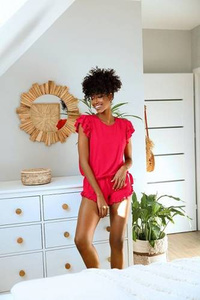 Жіноча піжама Donna Caroline Short – бавовняна, з квітковим принтом, футболка та шорти