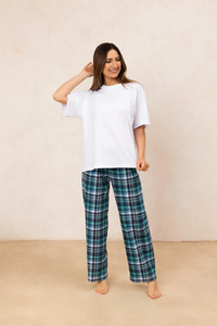 Жіноча піжама 38L Lidia Marija – білий верх, штани в сіро-білу клітинку, 100% бавовна