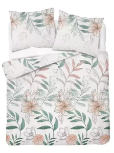 Постільний комплект Home Satin квіти 4457 A Detexpol, - білий/зелений