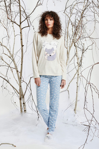 Жіноча піжама Mefemi by Nipplex Selene PX75, бежевий– бавовняна кофтина та штани з віскози