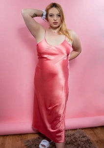 Нічна сорочка комбінація Iga Halka сатинова DKaren - пудра