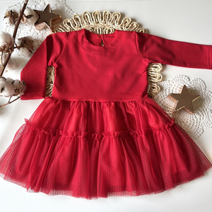 Сукня дитяча з довгим рукавом SH01-A Merry Christmas Mamatti - червоний