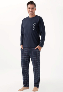 Чоловіча піжама Key MNS 431, темно-синій – бавовна фланель, на ґудзиках, довгий рукав