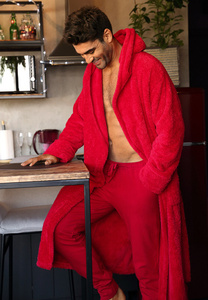 Чоловічий велюровий халат Noble 868 De Lafense – стильний, м’який, елегантний, бургунді