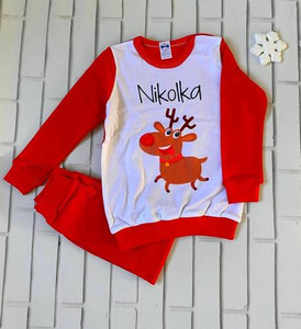 Piżamka świąteczna dla dzieci z reniferem i imieniem Moocha czerwony