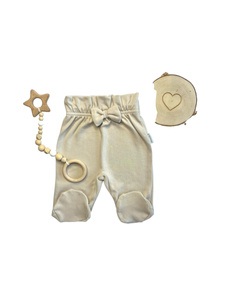 Дитячі півповзунки з високою талією Mamatti PG15217 – однотонні бежеві, бавовняні