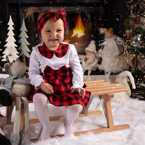 Плаття-боді + пов'язка на голівку 163556 "Magia Świąt" Nicol, - клітинка: чорний, червоний