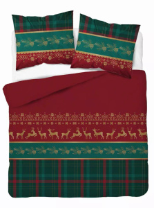 5619 A5623 A Magia Świąt Фланелева постільна білизна Detexpol, - чорвоно-зелена, бавовна, в клітинку, 160гр/м.кв., на блискавці