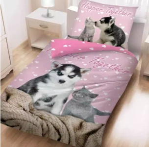 Комплект постільної білизни +торбина "Котик і песик" CD-0037BL Halantex, - рожевий