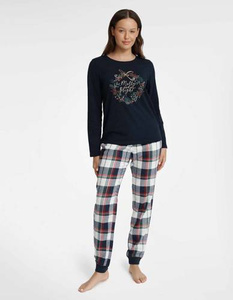 Ava Piżama damska długi rękaw i spodnie Italian Fashion- druk granatowy