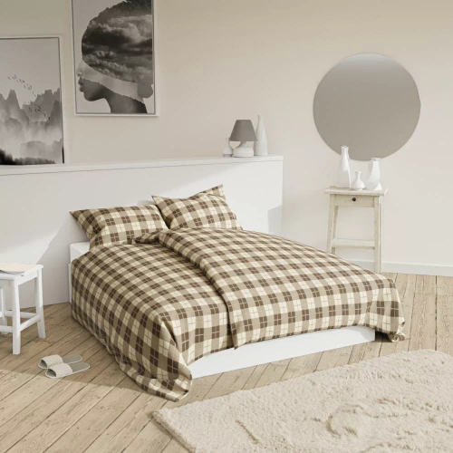 Бавовняна постільна білизна Клітинка/ Krata Spod Igły i Nitki, - бежевий