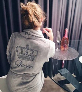 Queen + Korona Халат жіночий флісовий ByShelly -світло-сірий/сріблястий