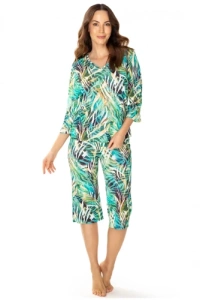Піжама жіноча Florisa Italian короткий рукав, 3/4 Fashion, - темно-зелений/принт