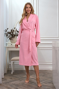 Жіночий халат Coco 2530 L&L – довгий, бавовняний, з рожевою облямівкою