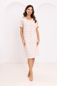 Жіноча Бавовняна Нічна Сорочка Regina 172 – Короткий Рукав, Напівкруглий Виріз, Принт, Довжина До Коліна, 100% Бавовна