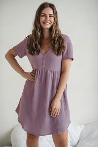 Муслінова нічна сорочка для вагітних і годуючих жінок Aurora Milk&Love, - лавандовий
