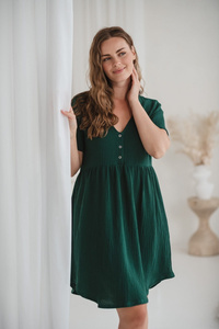 Муслінова нічна сорочка для вагітних і годуючих жінок Aurora Milk&Love, - зелена пляшка
